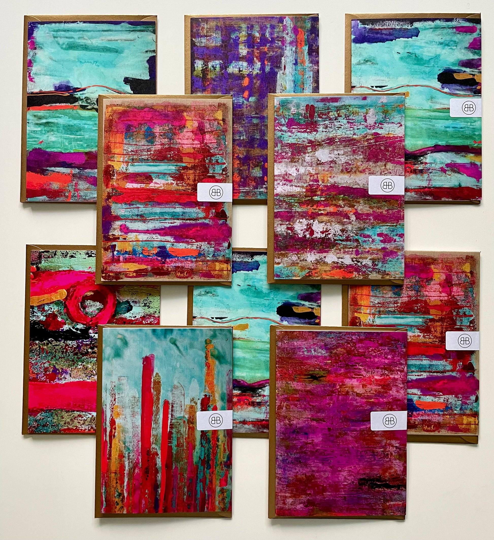 These vibrant greeting cards are digitally printed onto quality card and paired with a beautiful gold envelope. They're plastic free and come in a mixed pack of 10 x A6 greetings cards.